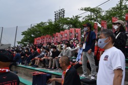 太陽誘電、新潟太陽誘電の応援団が見守る中、熱戦が繰り広げられていました。